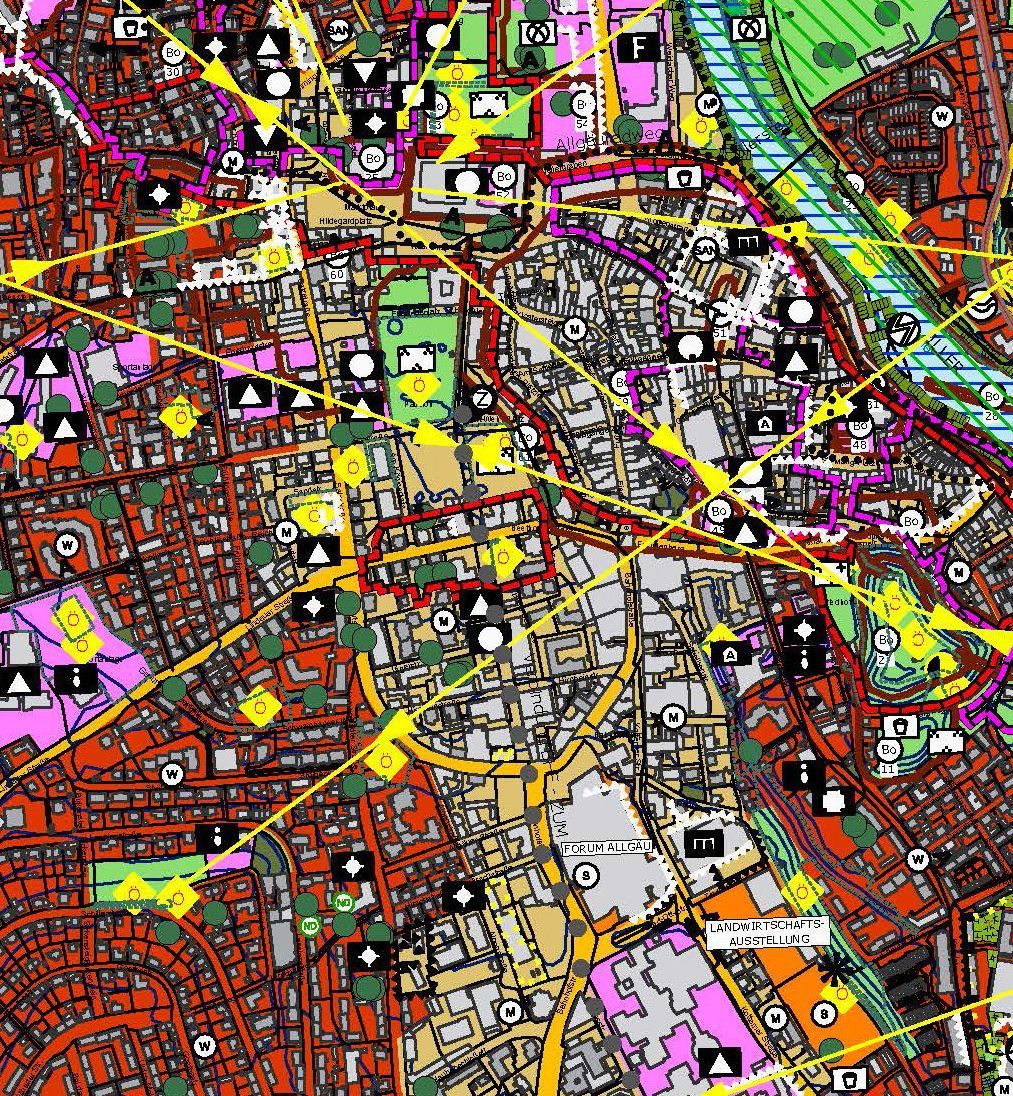 Der Flächennutzungsplan (FNP) enthält die Grundzüge der städtebaulichen Entwicklung und dient der Stadt als Leitlinie für die räumliche Verteilung von verschiedenen Nutzungen innerhalb des Stadtgebietes. Der FNP regelt die Aufteilung von Bauflächen (Wohnen, Gewerbe) sowie die Verteilung der wichtigsten Standorte für öffentliche Einrichtungen wie Schulen, Krankenhäuser oder Sportanlagen. Die Art der Nutzung wird nach einem festen Farbschema im Plan dargestellt.